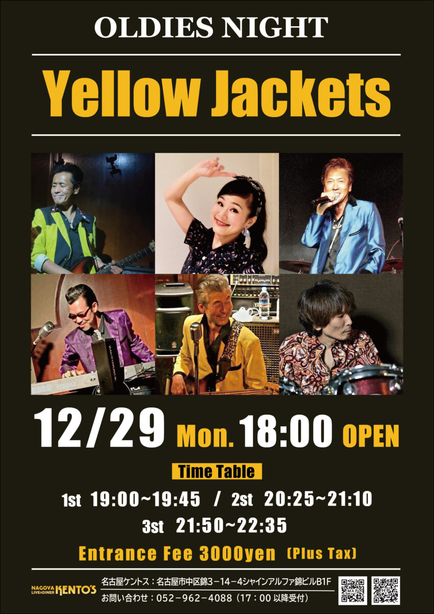 ケントスをご存じであればだれもが知ってるオールディーズバンド【イエロージャッケッツ】が名古屋ケントス出演が実現!!